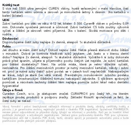 S více než 5500 ultra jemnými CUREN vlákny, hustě seřazenými v malé hlavičce, čistí tento kartáček velmi účinně a zároveň je mimořádně šetrný k dásním. 3ks kartáčků v balení (blister).