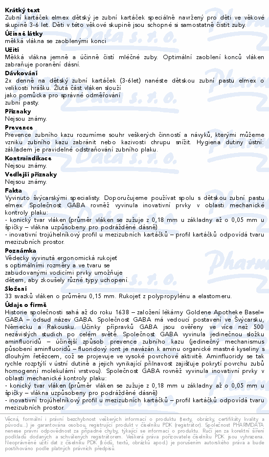 Zubní kartáček elmex dětský je zubní kartáček speciálně navržený pro děti ve věkové skupině 3-6 let. Děti v této věkové skupině jsou schopné si samostatně čistit zuby.