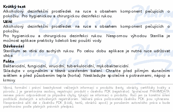 Alkoholový dezinfekční prostředek na ruce s obsahem komponent pečujících o pokožku. Pro hygienickou a chirurgickou dezinfekci rukou.
