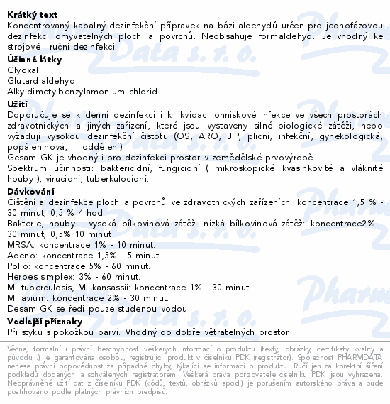 Koncentrovaný kapalný dezinfekční přípravek na bázi aldehydů určen pro jednofázovou dezinfekci omyvatelných ploch a povrchů. Neobsahuje formaldehyd. Je vhodný ke strojové i ruční dezinfekci.