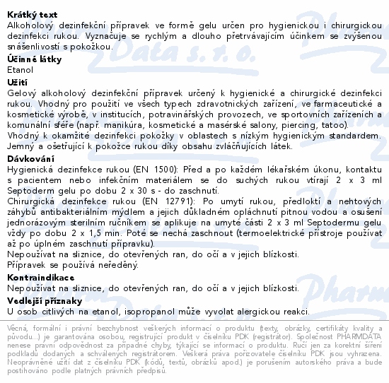 Alkoholový dezinfekční přípravek ve formě gelu určen pro hygienickou i chirurgickou dezinfekci rukou. Vyznačuje se rychlým a dlouho přetrvávajícím účinkem se zvýšenou snášenlivostí s pokožkou.
