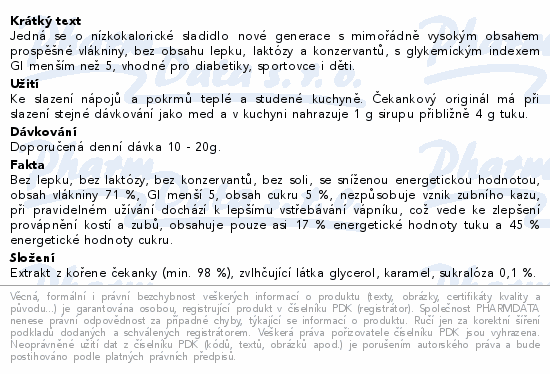 Jedná se o nízkokalorické sladidlo nové generace s mimořádně vysokým obsahem prospěšné vlákniny, bez obsahu lepku, laktózy a konzervantů, s glykemickým indexem GI menším než 5, vhodné pro diabetiky, sportovce i děti.