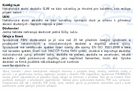 Nekalorické stolní sladidlo SLIM na bázi cukralózy je vhodné pro každého, kdo snižuje příjem kalorií.