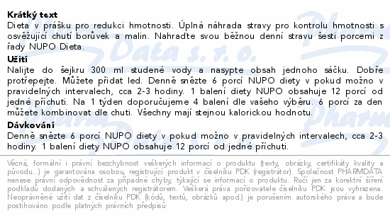 Dieta v prášku pro redukci hmotnosti. Úplná náhrada stravy pro kontrolu hmotnosti s osvěžující chutí borůvek a malin. Nahraďte svou běžnou denní stravu šesti porcemi z řady NUPO Dieta.
