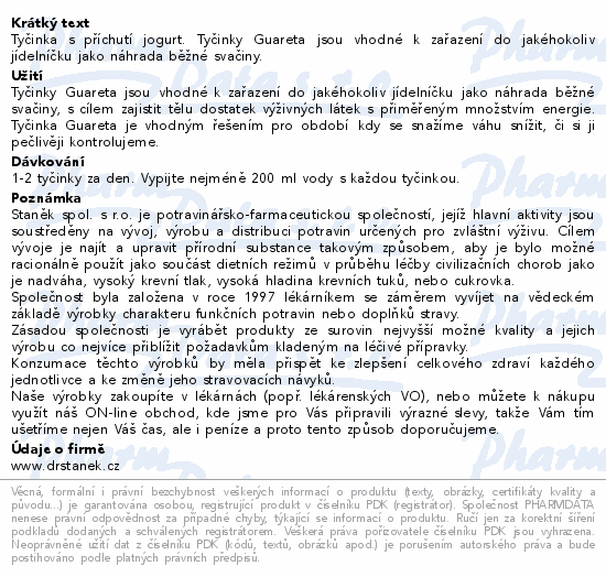 Tyčinka s příchutí jogurt. Tyčinky Guareta jsou vhodné k zařazení do jakéhokoliv jídelníčku jako náhrada běžné svačiny.