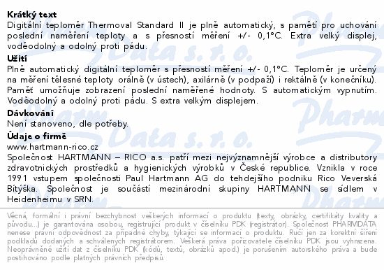 Digitální teploměr Thermoval Standard II je plně automatický, s pamětí pro uchování poslední naměření teploty a s přesností měření +/- 0,1°C. Extra velký displej, voděodolný a odolný proti pádu.