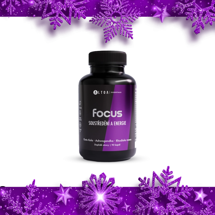 Zůstaňte v klidu i pod tlakem. FOCUS je přírodní doplněk stravy navržený pro každého, kdo potřebuje mentálně fungovat naplno – a dlouhodobě. Pomáhá zvládat stres, podporuje soustředění, paměť i celkovou odolnost vůči psychické zátěži. Ideální pro studenty, manažery i každodenní hrdiny, kteří potřebují být v pozoru – bez kofeinu a bez výkyvů energie.