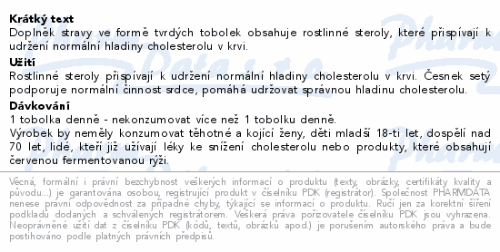 Složení: Rostlinné steroly, koenzym Q10, monokolin K, vitamin B6, extrakt česneku, kyselina listová, chrom, vitamin B12