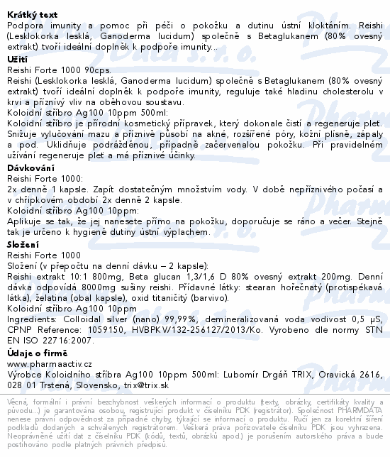 Reishi FORTE 1000 1+1 cps.90+Ag100 10ppm 500ml