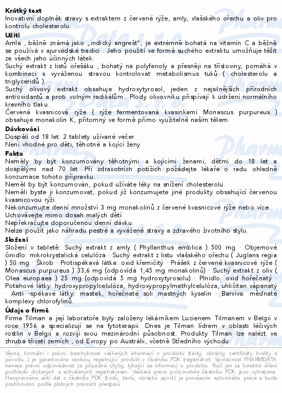 Inovativní doplněk stravy s extraktem z červené rýže, amly, vlašského ořechu a oliv pro kontrolu cholesterolu.