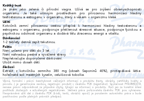 Je znám jako zelená či přírodní viagra. Užívá se pro zvýšení obranyschopnosti organismu. Je také účinným prostředkem pro přirozenou harmonizaci hladiny testosteronu a estrogenu v organismu, který s věkem v organizmu klesá.