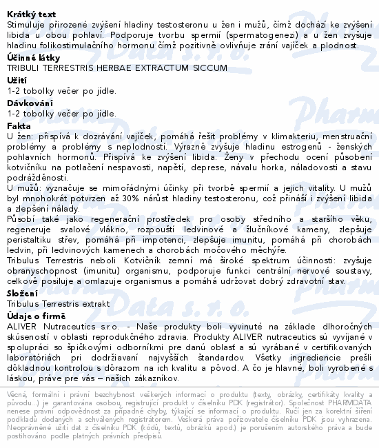 ALIVER Kotvičník zemní 90% extrakt cps.120