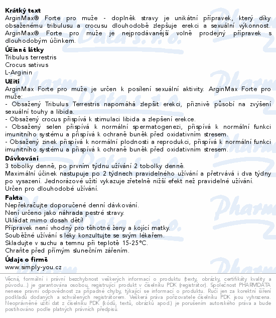 ArginMax® Forte pro muže - doplněk stravy je unikátní přípravek, který díky obsaženému tribulusu a crocusu dlouhodobě zlepšuje erekci a sexuální výkonnost. ArginMax® Forte pro muže je nejprodávanější volně prodejný přípravek s dlouhodobým účinkem.