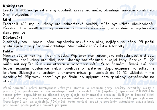 Erectan® 400 mg je extra silný doplněk stravy pro muže, obsahující unikátní kombinaci 5 aminokyselin.