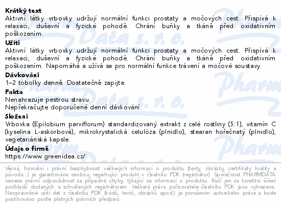 Aktivní látky vrbovky udržují normální funkci prostaty a močových cest. Přispívá k relaxaci, duševní a fyzické pohodě. Chrání buňky a tkáně před oxidativním poškozením.