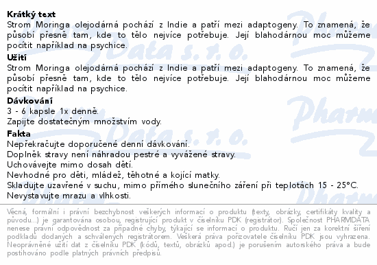 Strom Moringa olejodárná pochází z Indie a patří mezi adaptogeny. To znamená, že působí přesně tam, kde to tělo nejvíce potřebuje. Její blahodárnou moc můžeme pocítit například na psychice.