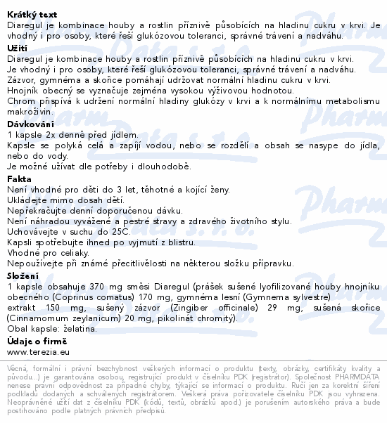 Diaregul je kombinace houby a rostlin příznivě působících na hladinu cukru v krvi. Je vhodný i pro osoby, které řeší glukózovou toleranci, správné trávení a nadváhu.