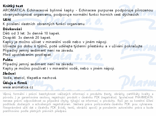 AROMATICA Echinaceové bylinné kapky - Echinacea purpurea podporuje přirozenou obranyschopnost organismu, slouží jako podpůrná terapie při nachlazení, podporuje normální funkci horních cest dýchacích.