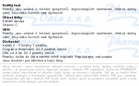 Pastilky jsou určené k mírnění symptomů, doprovázejících nachlazení, infekce dutiny ústní, krku nebo horních cest dýchacích.