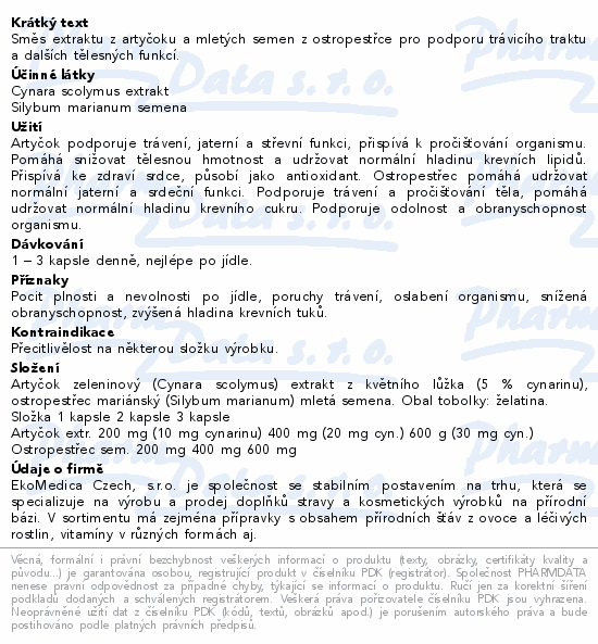 Artyčok+ostropestřec cps.60 EkoMedica