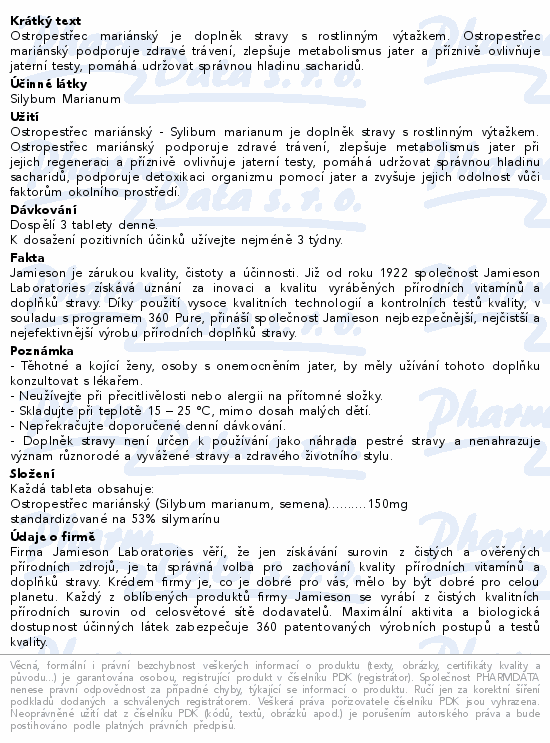 Ostropestřec mariánský je doplněk stravy s rostlinným výtažkem. Ostropestřec mariánský podporuje zdravé trávení, zlepšuje metabolismus jater a příznivě ovlivňuje jaterní testy, pomáhá udržovat správnou hladinu sacharidů.