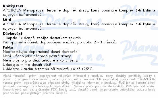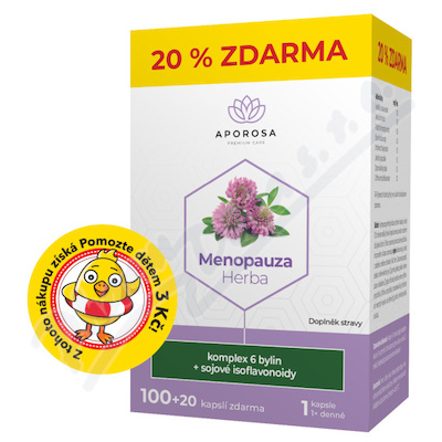 APOROSA Menopauza Herba je doplněk stravy, který obsahuje komplex 6-ti bylin a sojových isoflavonoidů.