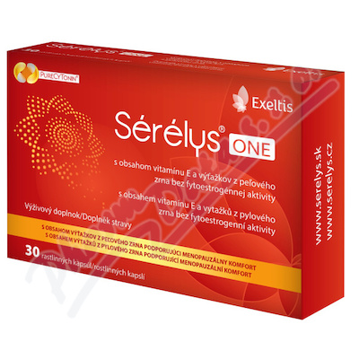 Sérélys ONE je doplněk stravy s obsahem výtažků pylového zrna, podporující menopauzální komfort, a vitaminu E, který přispívá k ochraně buněk před oxidativním stresem.