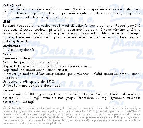 Při nadměrném denním i nočním pocení. Správné hospodaření s vodou patří mezi důležité funkce organismu. Pocení pomáhá regulovat tělesnou teplotu, přispívá k odstranění zplodin látkové výměny z těla.