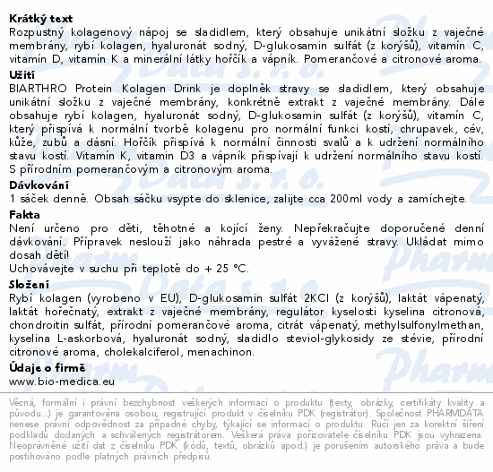 Biarthro Protein Kolagen drink 30 sáčků Biomedica