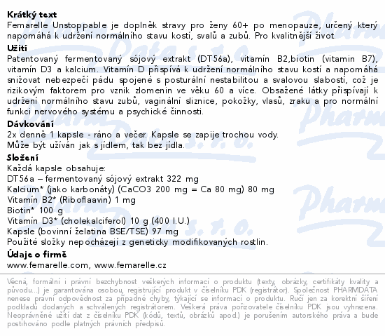 Femarelle Unstoppable je doplněk stravy pro ženy 60+ po menopauze, určený který napomáhá k udržení normálního stavu kostí, svalů a zubů. Pro kvalitnější život.
