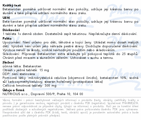 Betakaroten pomáhá udržovat normální stav pokožky, udržuje její krásnou barvu po slunění a také přispívá udržení normálního stavu zraku.