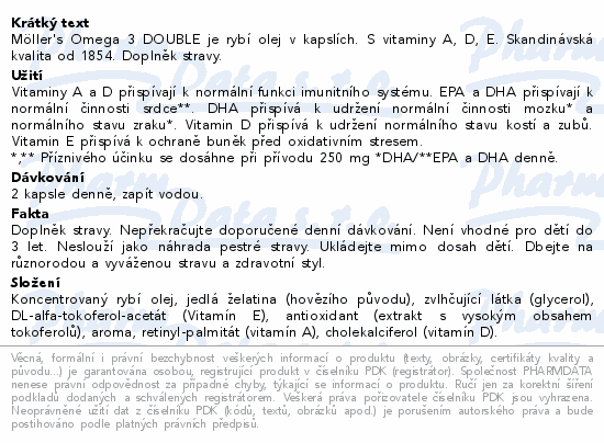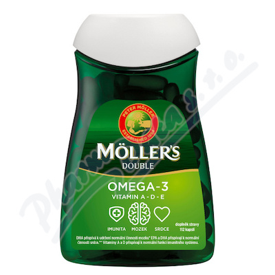 Möller's Omega 3 DOUBLE je rybí olej v kapslích. S vitaminy A, D, E. Skandinávská kvalita od 1854. Doplněk stravy.