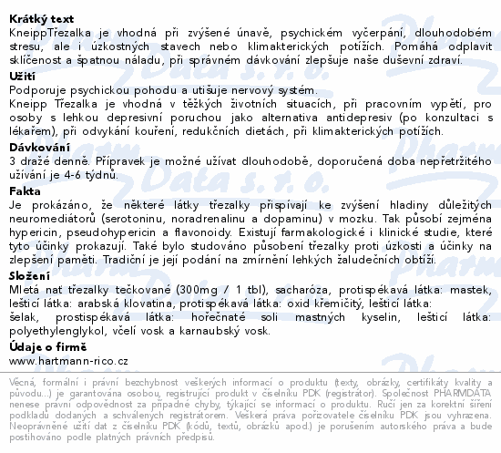 Kneipp® Třezalka je vhodná při zvýšené únavě, psychickém vyčerpání, dlouhodobém stresu, ale i úzkostných stavech nebo klimakterických potížích. Pomáhá odplavit sklíčenost a špatnou náladu, při správném dávkování zlepšuje naše duševní zdraví.