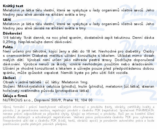 Melatonin, nebo také hormon tmy a spánku, přispívá ke zkrácení doby nutné k usnutí. Příznivého účinku se dosáhne při konzumaci 1 mg melatoninu před spaním.