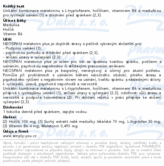 Unikátní kombinace melatoninu s L-tryptofanem, hořčíkem, vitaminem B6 a meduňkou pro rychlejší usínání (1) a zklidnění před spánkem (2,3).