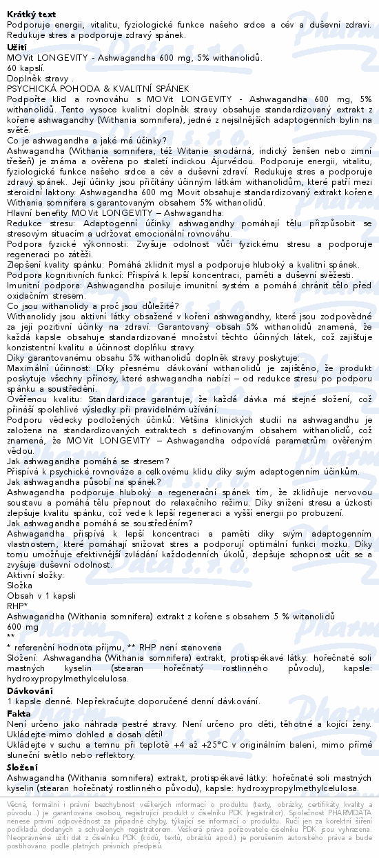 MOVit Longevity ASHWAGANDHA 600mg cps.60