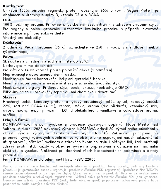 KOMPAVA Vegan Protein čokoláda-skořice 525g