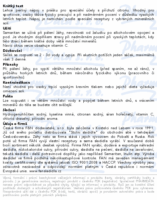 Lehce perlivý nápoj v prášku pro speciální účely s příchutí citronu. Vhodný pro sportovce, osoby těžce fyzicky pracující a při nadměrném pocení v důsledku vysokých letních teplot. Nápoj je namíchán podle speciální receptury z vybraných minerálních solí.