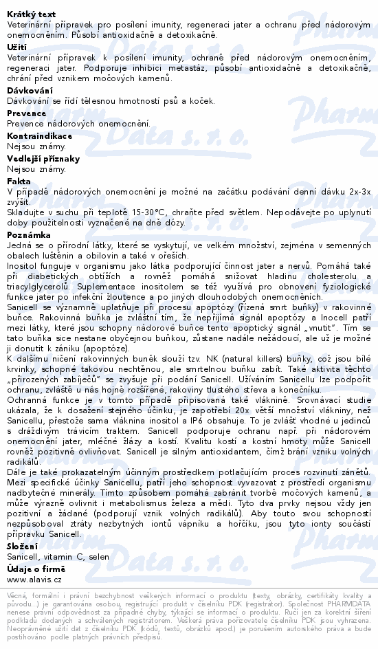 Veterinární přípravek pro posílení imunity, regeneraci jater a ochranu před nádorovým onemocněním. Působí antioxidačně a detoxikačně.
