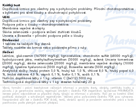 Doplňkové krmivo pro všechny psy s pohybovými problémy. Přírodní chondroprotektiva s bylinkami pro silné klouby a dlouhotrvající pohyblivost.