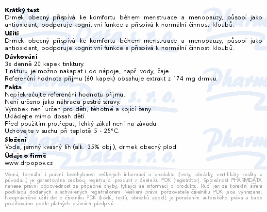 Drmek obecný přispívá ke komfortu během menstruace a menopauzy, působí jako antioxidant, podporuje kognitivní funkce a přispívá k normální činnosti kloubů.