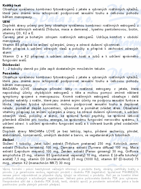 Obsahuje vyváženou kombinaci fytoestrogenů z jetele a vybraných rostlinných výtažků, které jsou známé svou schopností podporovat sexuální touhu a celkovou pohodu během menopauzy.