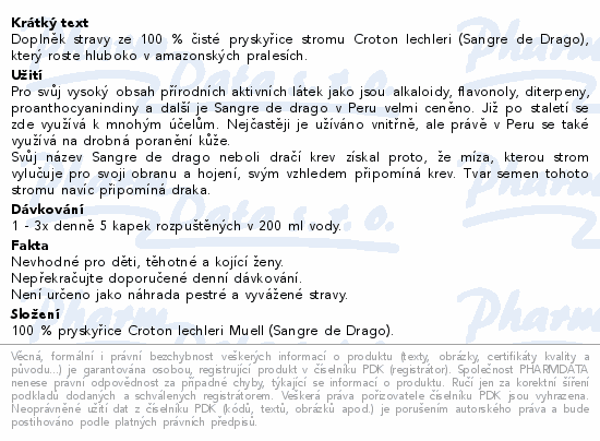 Doplněk stravy ze 100% čisté pryskyřice stromu Croton lechleri (Sangre de Drago), který roste hluboko v amazonských pralesích.