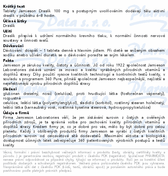 Tablety Jamieson Draslík 100 mg s postupným uvolňováním dodávají tělu aktivní draslík v průběhu 6–8 hodin.