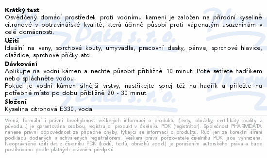 Osvědčený domácí prostředek proti vodnímu kameni je založen na přírodní kyselině citronové v potravinářské kvalitě, která účinně působí proti vápenatým usazeninám v celé domácnosti.