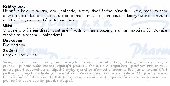 Účinně zlikviduje skvrny, viry i bakterie, skvrny živočišného původu – krev, moč, zvratky a znečištění, které často způsobí domácí mazlíčci, při čištění kuchyňského dřezu i mnoha různých povrchů v domácnosti.