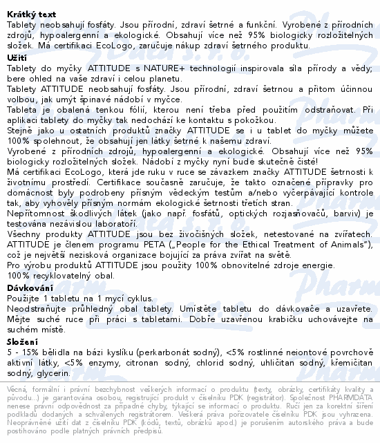 ATTITUDE Tablety do myčky bez fosfátů 26ks