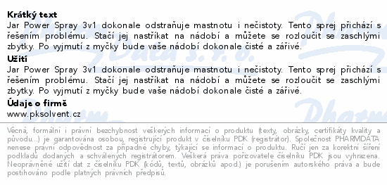 Jar Power Spray 3v1 dokonale odstraňuje mastnotu i nečistoty. Tento sprej přichází s řešením problému. Stačí jej nastříkat na nádobí a můžete se rozloučit se zaschlými zbytky. Po vyjmutí z myčky bude vaše nádobí dokonale čisté a zářivé.