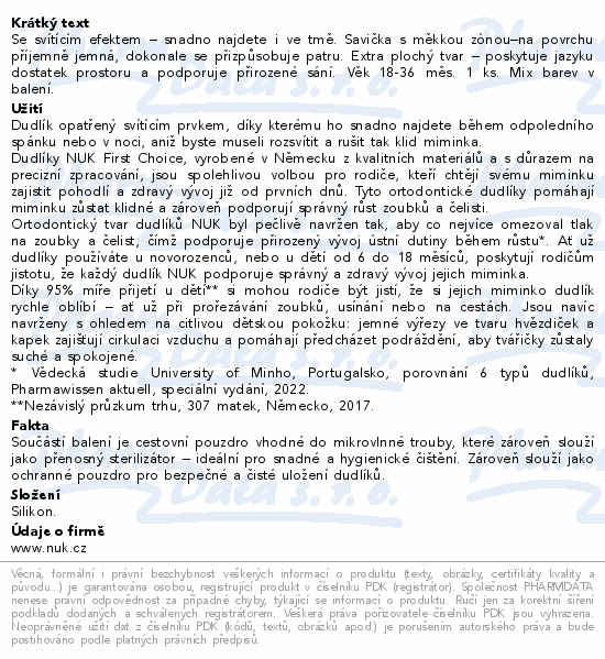 NUK First Choice Night dudlík 18-36m 1ks mix barev