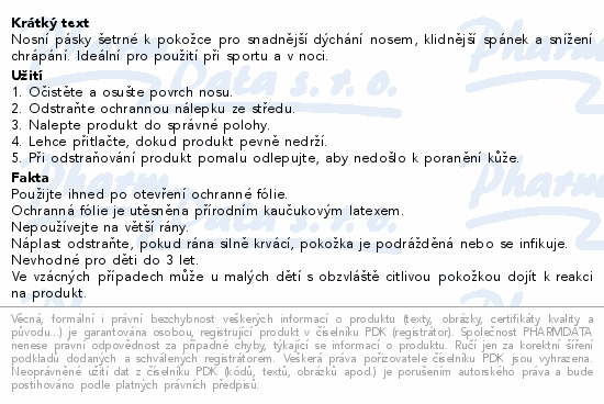 Nosní pásky šetrné k pokožce pro snadnější dýchání nosem, klidnější spánek a snížení chrápání. Ideální pro použití při sportu a v noci.
